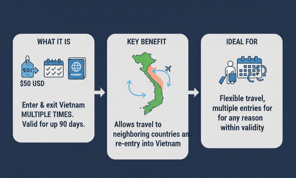 A multiple-entry e-visa allows you to enter and exit Vietnam multiple times within the validity of your visa. This is a good option if you are planning to visit neighboring countries and then re-enter Vietnam, or if you want the flexibility to leave and re-enter Vietnam for any reason.